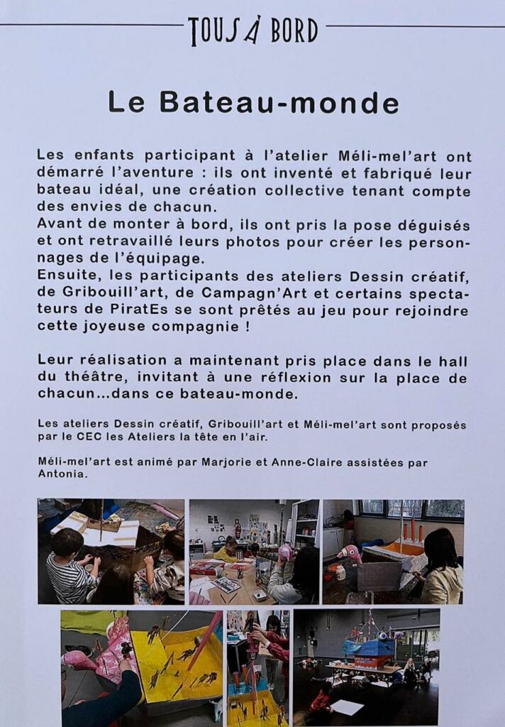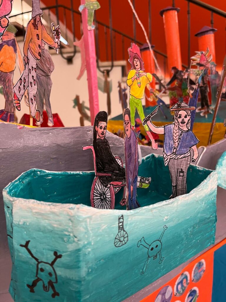 Chacun·e a trouvé sa place à bord du bateau collectif : la créativité a pris le large, là où liberté et utopie voguent librement. Ce moment d’atelier a offert une parenthèse enchantée où l’art se mêle au jeu et à l’imaginaire des jeunes moussaillons.