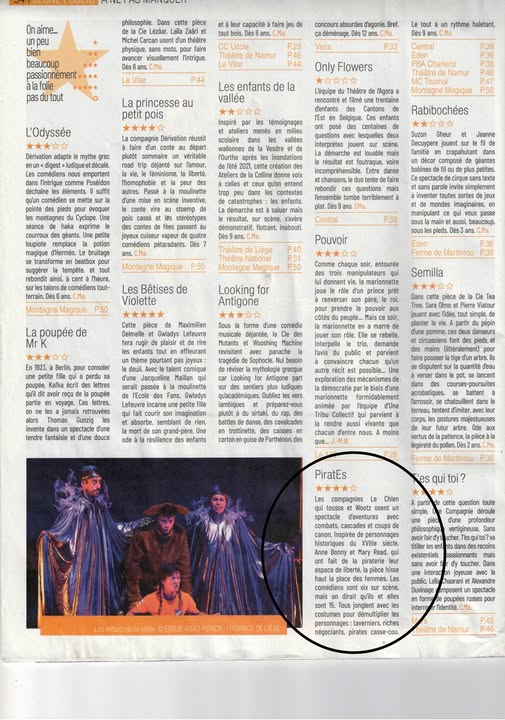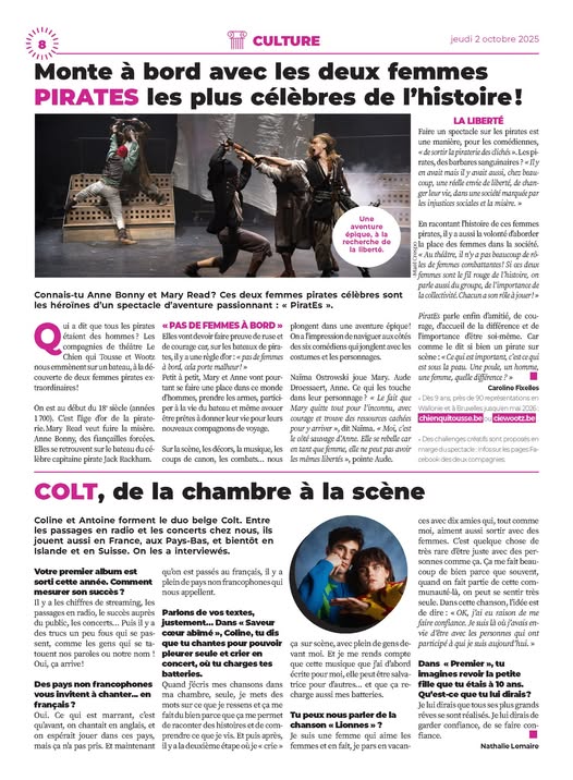 Le Journal des Enfants met en lumière notre duo de pirates légendaires : « Ces deux femmes pirates célèbres sont les héroïnes d’un spectacle d’aventure passionnant : PiratEs. »